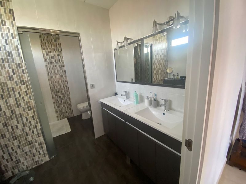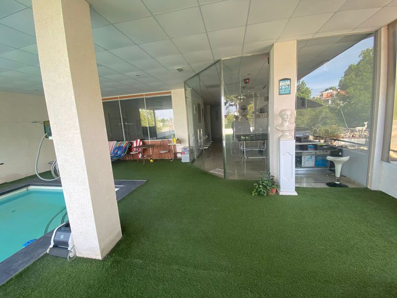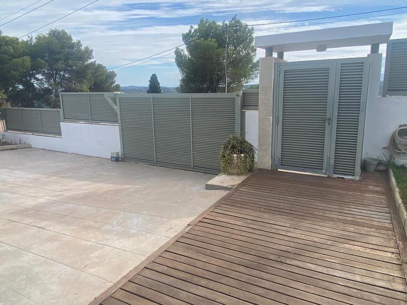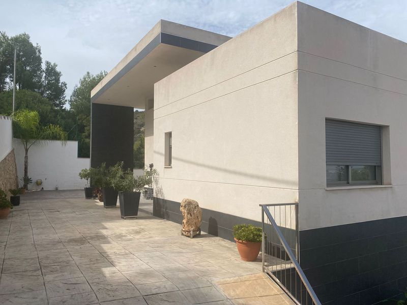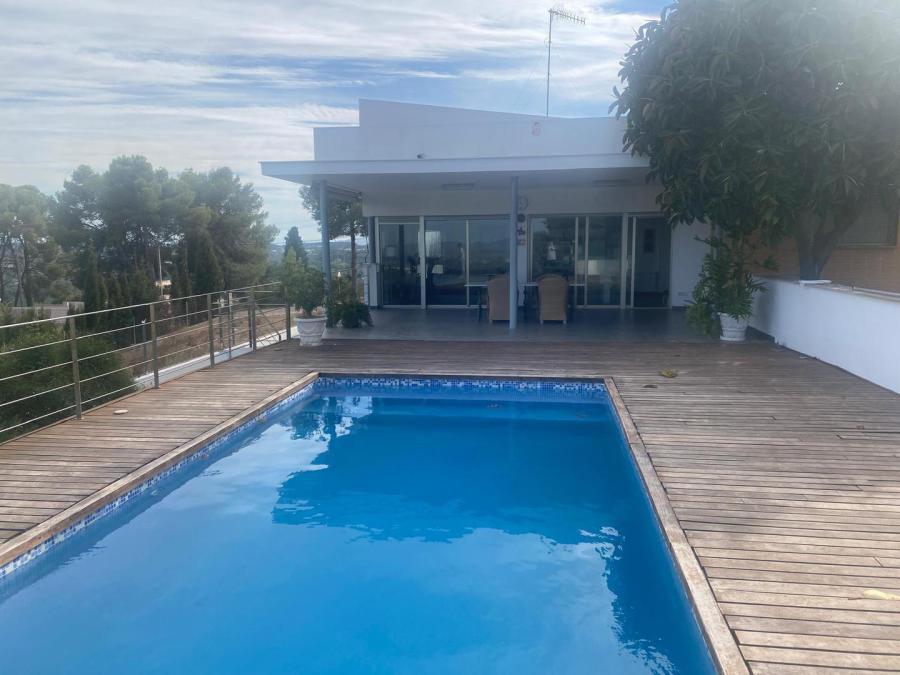 Benlloch Inmo le ofrece este chalet moderno, minimalista, en Urbanización Cumbres de Calicanto. Situado en una parcela plana con inmejorables vistas. Chalet muy cómodo en una sola planta, con zona de día y zona de noche. Amplio salón comedor con ventanales que conectan directamente con una terraza cubierta y en el mismo plano la piscina, todo rodeado de madera natural, y desde esta zona toda la vista de la comarca. El distribuidor conecta directamente con un pasillo en el que se encuentran las cuatro habitaciones y los dos baños. La parcela esta totalmente urbanizada, en la zona de la entrada con hormigón impreso, para el acceso rodado de los vehículos, 2 cubiertos y 4 descubiertos. El resto ajardinado con césped natural y pasillos pavimentados. El chalet ofrece inmejorables vistas sobre la comarca y de fondo la sierra calderona, desde comedor, terraza y piscina. Situado en la calle principal, en una zona de escaso tráfico. La puerta de entrada de vehículos está automatizada. Esta vivienda esta situada a 20 km de Valencia, 20/25 minutos en automóvil. La urbanización esta conectada por autovía hacia todos los destinos. a 15 minutos del aeropuerto 399.000 euros