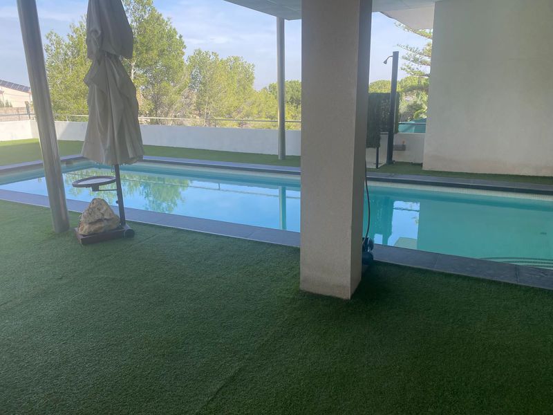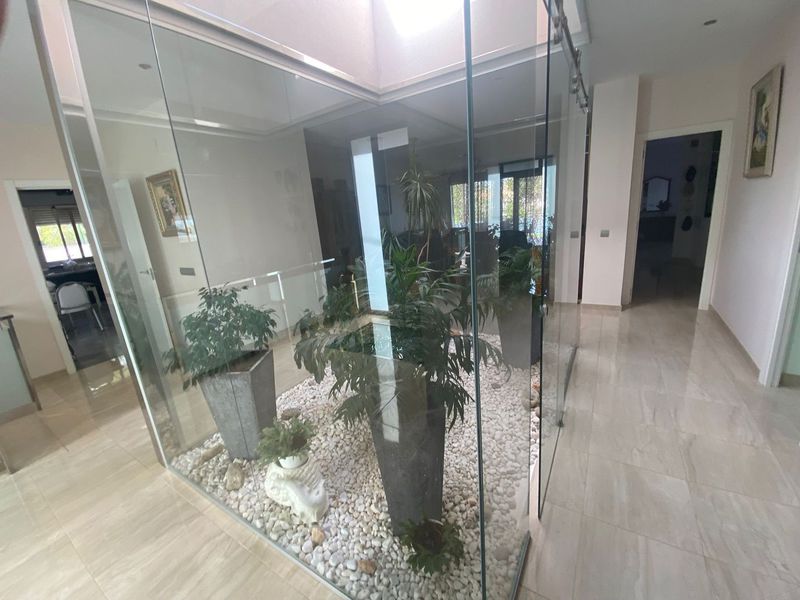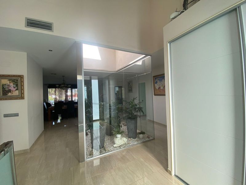 Benlloch Inmo le ofrece este mágnifico chalet situado en la Urbanización Cumbres de Calicanto, zona de Santo Domingo, cerca de la entrada y de los servicios. Muy bien comunicado. Chalet moderno, en una planta, a nivel de calle se encuentra la vivienda y en el nivel inferior, comunicado por escalera, el gimnasio, zona música, aseo, despacho, terrazas, bodega etc, y que comunica con la piscina. En la planta noble, dispone de amplio salón comedor con chimenea, con terraza, muy luminoso (incluyendo luz natural en el centro, a través de un lucernario que se abre y cierra de forma automática), amplia cocina office, con isla totalmente equipada, sala de lavado y plancha y barbacoa que comunica con la terraza cubierta, cuatro habitaciones y 3 baños, vestidor. Piscina completamente integrada en la vivienda, zona deportiva, garaje varios vehículos, con puertas automáticas etc Amplia parcela de 1065 m2 totalmente urbanizada, con hormigón impreso y jardín artificial. Todo en estado nuevo, listo para entrar. Chalet muy cómodo y muy bien situado. A menos de 10 minutos de Torrent y unos 15/20 de Valencia, con acceso por autovía y comunicado a escasos km de la A7 y la A3. A 15 minutos del aeropuerto. Si busca un chalet muy amplio, cómodo y bien comunicado, no deje de visitarlo 513 m2 construidos y 1050 m2 de parcela 595.000 euros