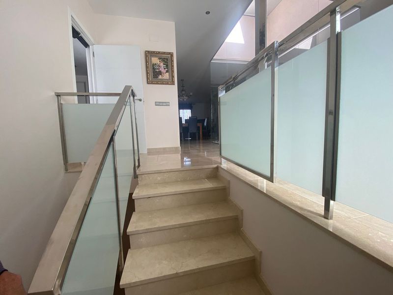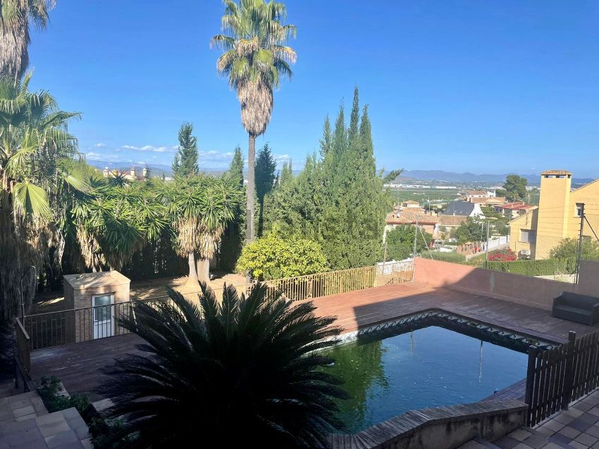 Benlloch inmo le ofrece Unifamiliar con vistas espectaculares hacia Valencia en zona de San Miguel, 360 m2 construidos y parcela de 700 m2. Suelos y escaleras de mármol, planta superior en parquet, calefacción central a gas-oil independiente por planta, persianas eléctricas, armarios empotrados de madera en todas las habitaciones y en el recibidor, chimenea en el salón, puertas de garaje y parcela automáticas … Cuenta con amplio garaje de 140 m2 de para 3 vehículos, trastero, cuarto para caldera y depósito de gas- oil, paellero, aseo y amplia sala de estar. Primera planta de 135 m2 con recibidor, aseo, dos dormitorios, cocina-office, lavadero y amplio salón comedor con salida a terraza comunicada con el office. Planta superior con 80 m2 con el dormitorio principal con terraza y vestidor, amplio baño con bañera y ducha y un dormitorio más. Parcela con jardín y riego automático. 590.000 euros