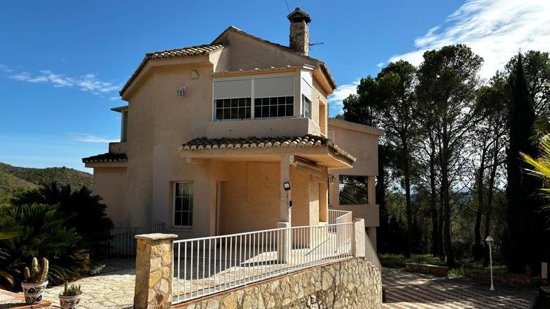 nmo Benlloch le ofrece este chalet situado en la Urbanización Cumbres de Calicanto, en la zona alta con maravillosas vistas a la comarca, y hacia el mar. Tiene una parcela de 860 m2 con pinada y urbanizada Sobre una superficie construida de 341 m2, dispone de salón comedor, cocina, 6 habitaciones y dos baños. Parquet, climalit, calefacción central, vestidor.... Piscina, garaje dos vehículos y otros dos garajes cubiertos en el exterior. jardín consolidado